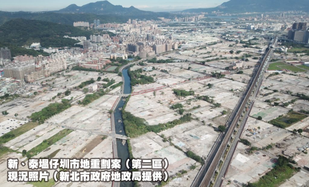 塭仔圳地區為淡水河洪水平原一級管制區解除及區域防洪計畫完成後之都市發展用地,新北市政府為配合國家重大交通建設,及全面檢討土地使用、公共設施、交通系統的需求,透過市地重劃推動大規模防災型都更,開闢公共設施,改善環境品質。其中「新、泰塭仔圳市地重劃案( 第二區 )」總面積約 120.71 公頃,本署經管國有土地約 11.3 公頃,佔比約 9.37%。全區重劃完成後將可提供約 72 公頃的可建築用地,預估未來可容納居住人口數約 2.9 萬人,完成後土地增值幅度約為原地價的 3.16 倍。
