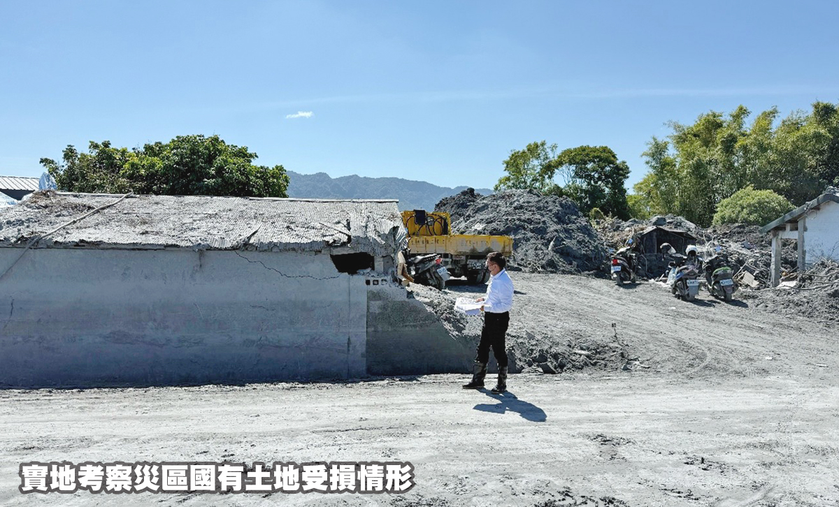 此外,花蓮辦事處前進災區實地考察,瞭解災後國有土地及建物受損情形,並配合災害應變中心召開會議及各項處理方針,加速災後復原工作,全力協助受災鄉民早日恢復正常生活。